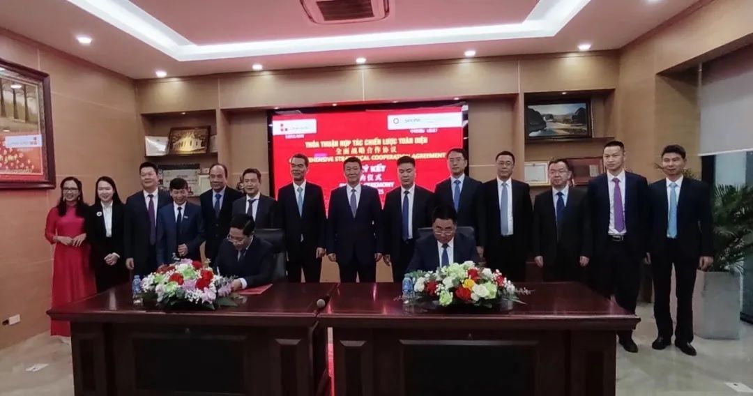 出访期间,印志松率团重点拜访了越南凯撒、越南成胜、越南龙山等核心战略客户,就水泥行业绿色低碳技术应用、智能化升级及新能源合作等方面展开探讨。中材国际强调以“高端化、智能化、绿色化”为方向,为越南客户提供涵盖工程设计、装备升级、数字工厂建设和运维等全产业链服务,助力越南水泥行业高端、可持续发展。在越南龙山集团总部,中材国际(南京)与龙山业主正式签署《战略合作协议》。根据协议,双方将在水泥生产线转型升级、绿色低碳及新能源等领域深化合作,共同打造越南水泥行业数智化转型标杆项目。该协议的签署标志着中材国际在越南市场的业务从传统工程服务向“科技+绿色”综合解决方案的全面升级。